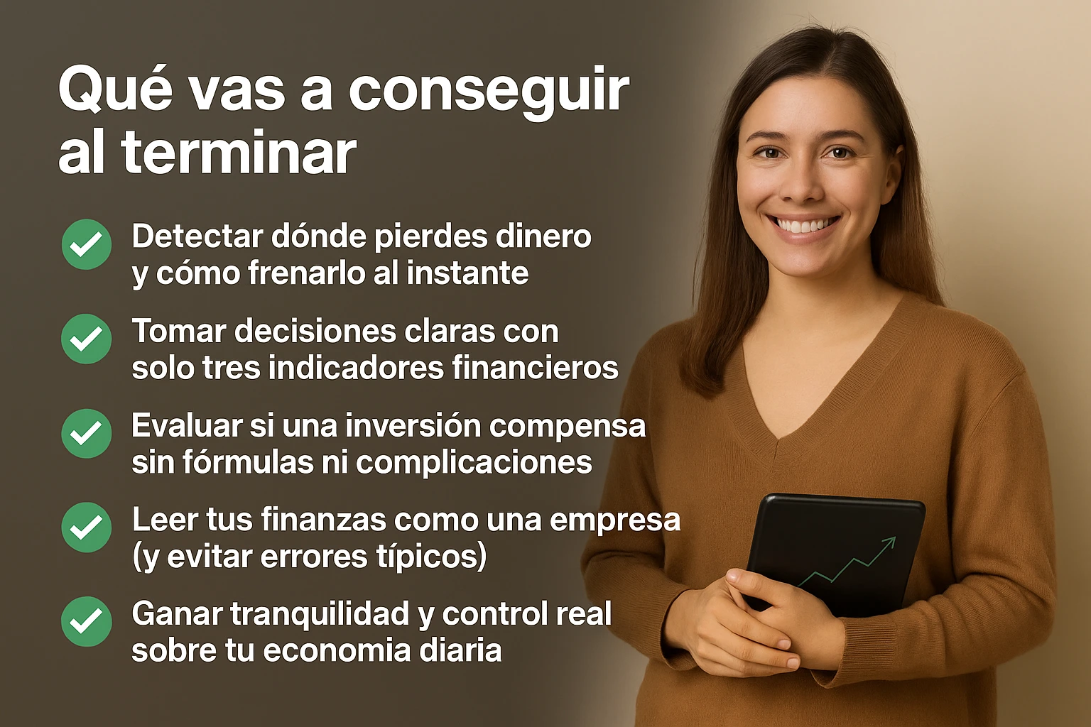 • Ganarás tranquilidad y control, porque por primera vez sabrás leer tu economía con ojos profesionales y tomar decisiones sin miedo.