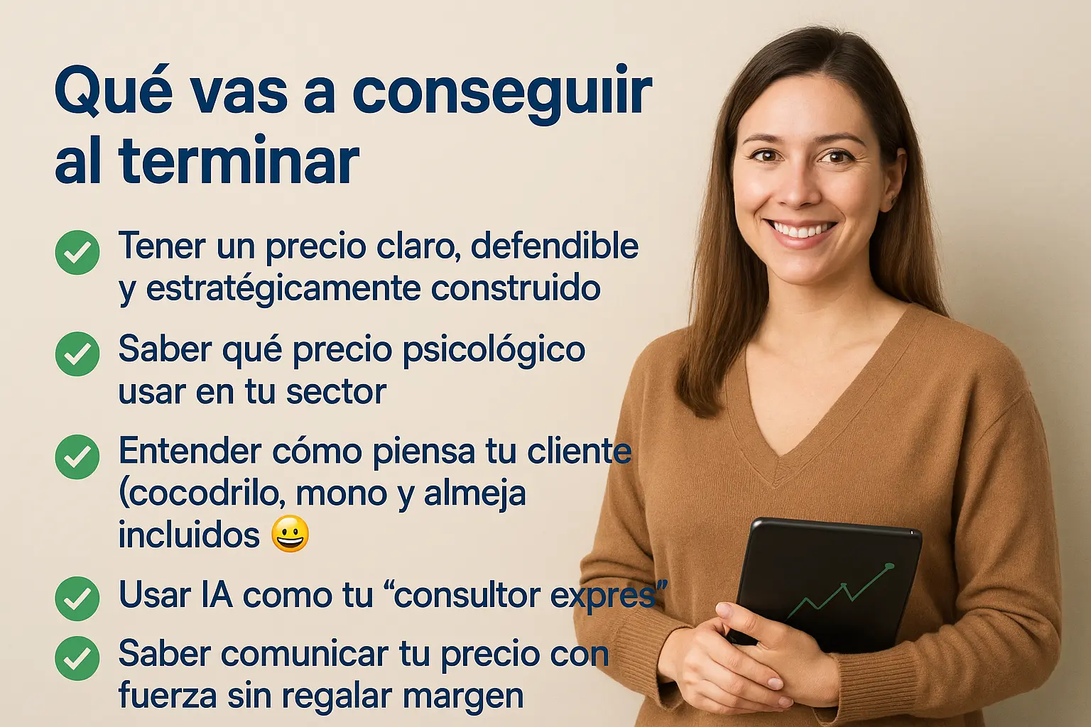 Porque un buen precio no se calcula: se construye. Y cuando dominas ese proceso, tus márgenes dejan de temblar, tu propuesta gana fuerza y tu cliente percibe más valor sin necesidad de bajar ni un euro.